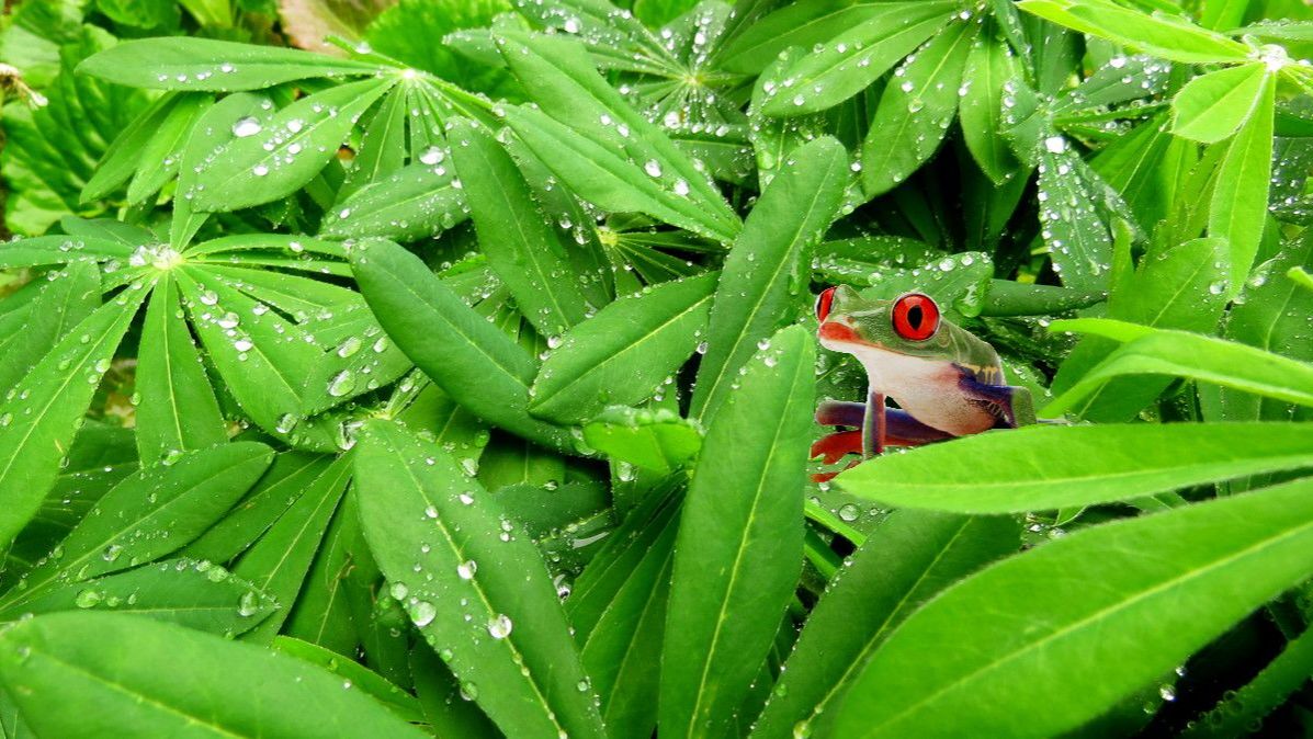 Заканчивается дождь. Радуются растения и птицы.