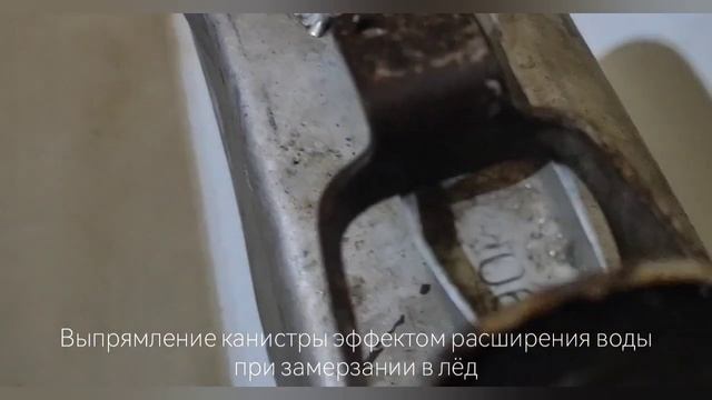 Восстановление форм помятой алюминиевой канистры, путем расширения воды изнутри / заморозка.