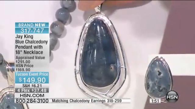 Jay King Blue Chalcedony Pendant with Necklace