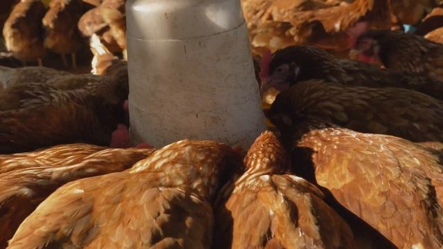 hens and chickens eating food in farm spsrvuc