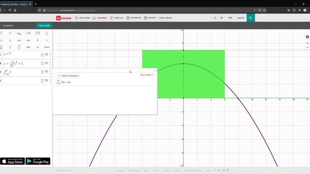 Symbolab - Pengiraan luas di bawah graf
