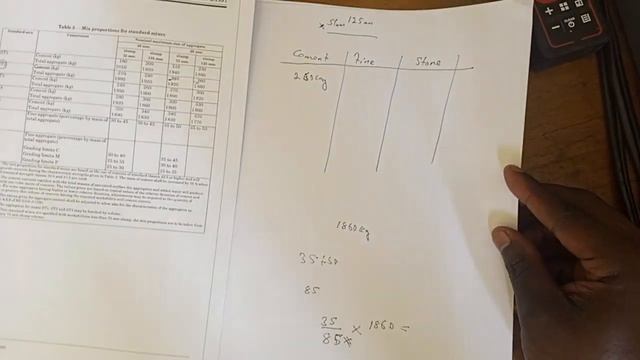 Concrete mix design by hand to BS-5328