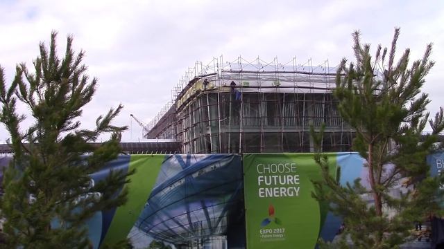 Возле офиса "Астана ЭКСПО-2017" новый газон. Стройка продолжается