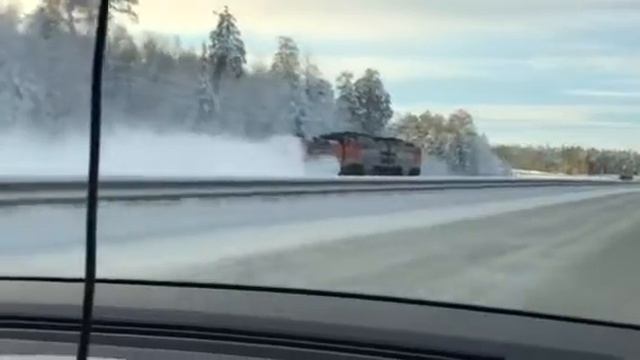 Поезд чистит снег