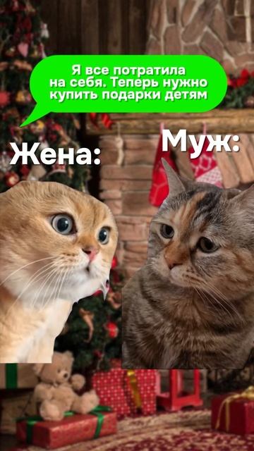 — Дорогой, закинь денег на карту на Новогодние подарки 🎁#новыйгод #подарки #котики #семья