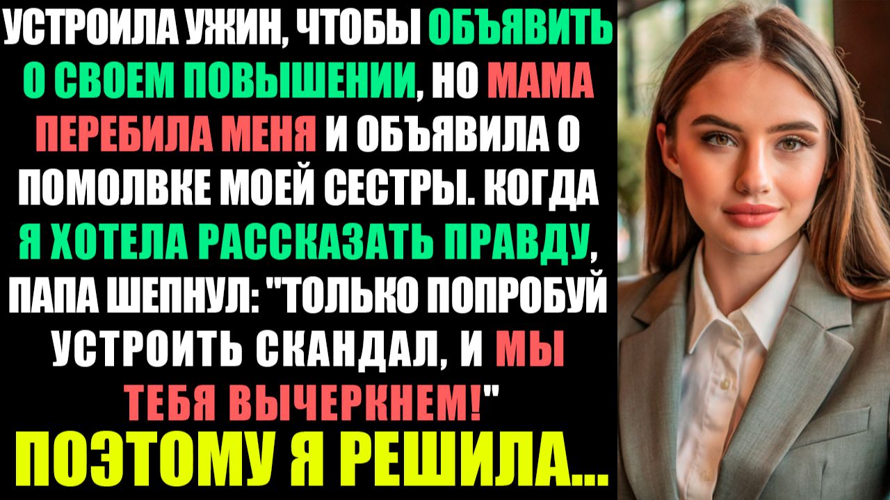Я УСТРОИЛА УЖИН В ЧЕСТЬ СВОЕГО ПОВЫШЕНИЯ, НО МАМА ПЕРЕБИЛА И ЗАЯВИЛА О ПОМОЛВКЕ СЕСТРЫ...