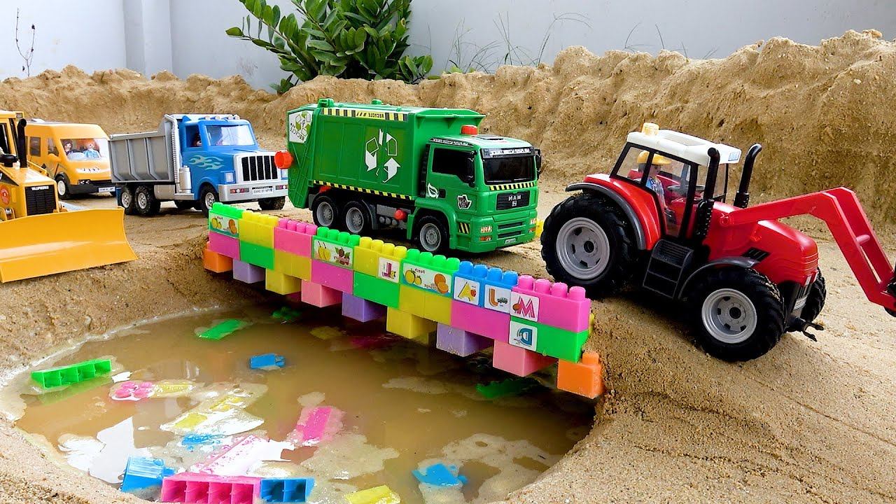 Подборка смешных видео с игрушечными трактор мусоровоз экскаватор самосвал