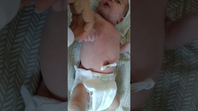 Обработка пупка новорожденного в скобе