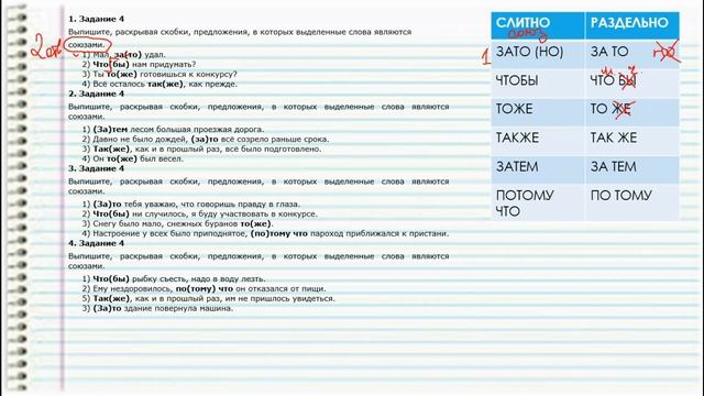 ПРАВОПИСАНИЕ СОЮЗОВ. ВПР 7 КЛАСС. ЗАДАНИЕ 4