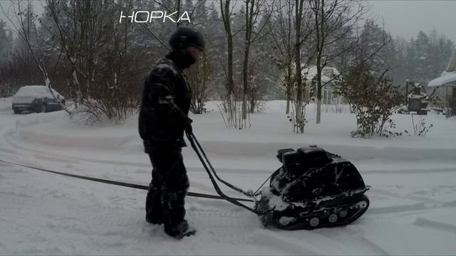Двухгусеничный мотобуксировщик POMOR X2 с модулем "Толкач" | По заснеженному склону