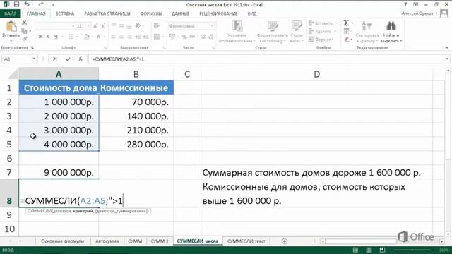 Excel Функция сумм если