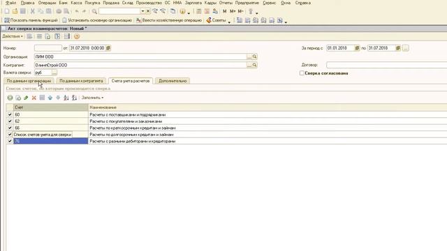 Как сделать акт сверки в 1 С