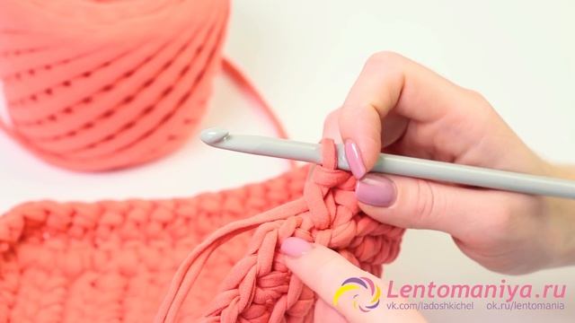 Вяжем корзинку крючком из трикотажной пряжи.