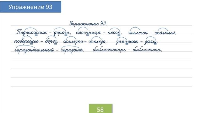 Упражнение 93 на странице 58. Русский язык 4 класс.