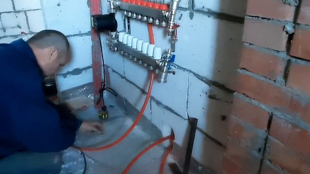Система теплого пола , из труб сшитого полиэтилена ,выполненная в доме 100м2.