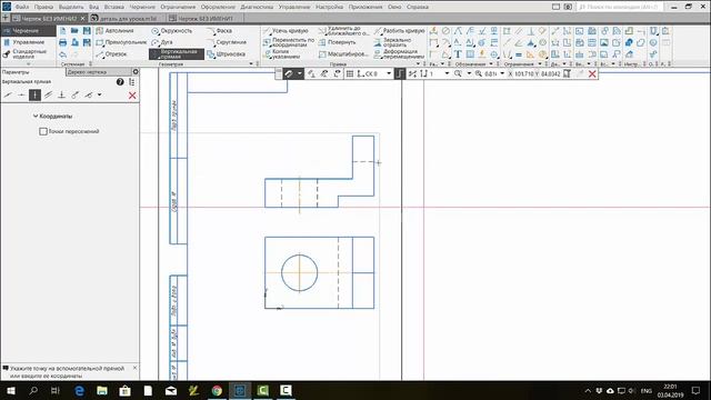 Компас 3d. Как начертить третий вид (слева).
