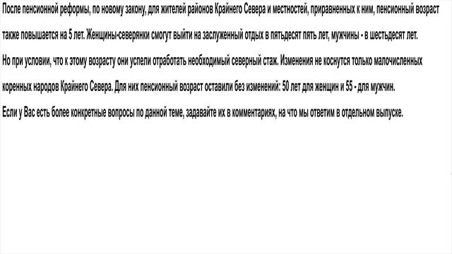 Пенсия для жителей районов Крайнего Севера после пенсионной реформы