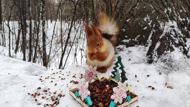 Снежный вальс для белочки и синиц 🎶 #squirrel #tit