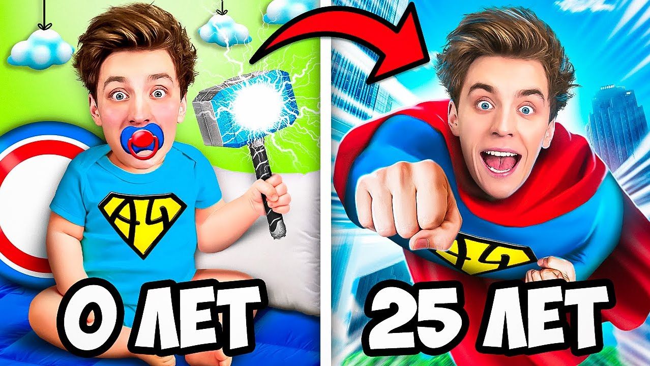 СУПЕРГЕРОЙ от 0 до 100 Лет Челлендж! *От РОЖДЕНИЯ до СМЕРТИ за 24 Часа* А4