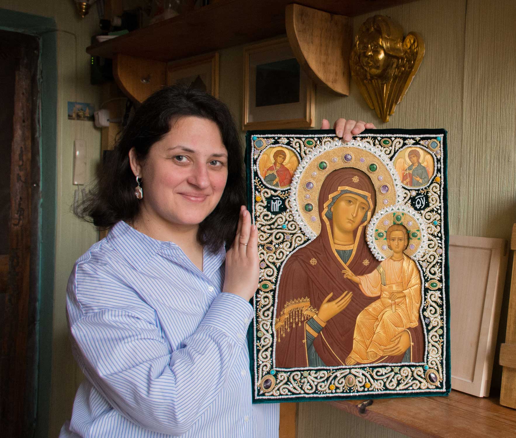 Жемчужный оклад для иконы.