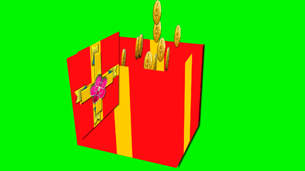 Подарок и Монеты на Зеленом Фоне.