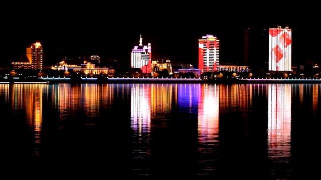 Ночная панорама городов Хэйхэ и Благовещенска смотреть онлайн