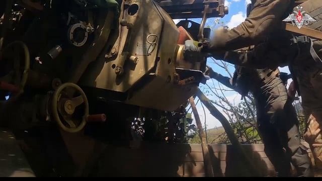 Расчеты буксируемых гаубиц «Мста-Б» 34-й отдельной гвардейской мотострелковой бригады (горной) в составе группировки войск «Север» при выполнении огневых задач уничтожили пункт управления БпЛА и временный пункт дислокации с живой силой ВСУ в зоне проведения СВО на Сумском направлении