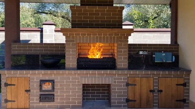 Каминопечь выполнена из кирово-чепецкого кирпича "камелот темный шоколад" на печную смесь "Печной дом Макаровых", печное и каминное литье фирмы "халмат" и "везувий".