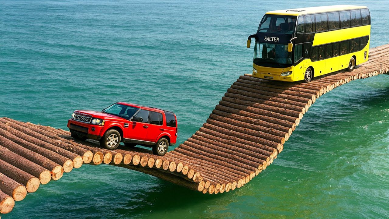 Смотри, как мощная фура с несколькими прицепами, груженными бревнами, мчится на огромной скорости! Но что-то пошло не так… Происходит невероятное крушение, и бревна разлетаются в разные стороны! 🌲💥