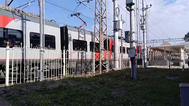 ✔️На видео показаны: электропоезда «ЭП2Д», «ЭС2Г (Ласточка)» и «ЭД4М» на железнодорожной станции МЦД (D4, D2) «Площадь трёх вокзалов», в городе Москва. 11.11.2023
