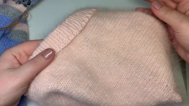 08: 43соединение вязаного полотна по горловине.