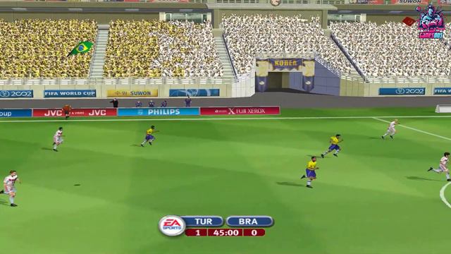 FIFA 2002 World Cup PC Gameplay. A match between Brazil and France. An amazing goal at 2:50 and a funny one at 5:40.