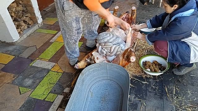 Валим свинью, опаливаем и разделываем!
