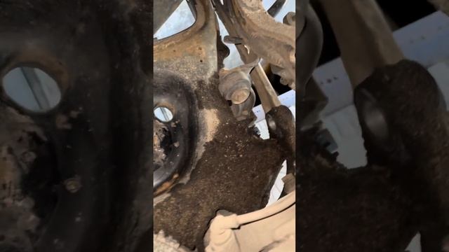 Обычно, самое трудное - это выкрутить болт из поворотного кулака верхнего крепления шаровых рычагов, но я обычно его смазываю раз в год, поэтому в моём случае он выкрутился вообще без проблем