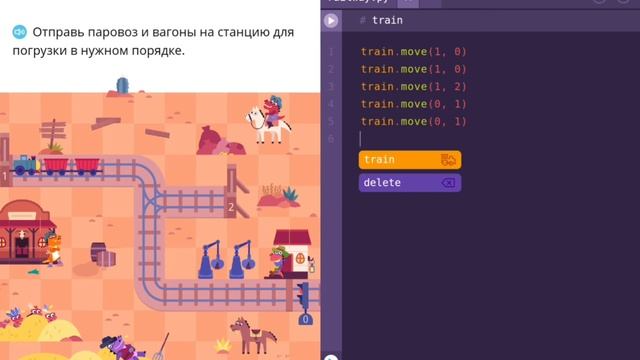 Прохожу новый уровень программирования на учи.ру - "Происки в тупиках". Открыла талант железнодорожника.