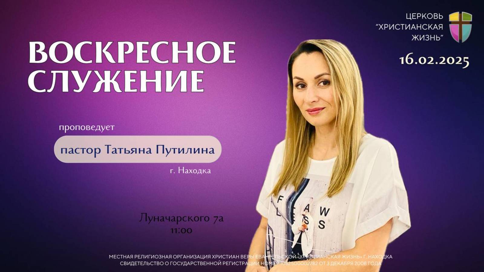 Наша церковь находится по адресу: г. Находка, ул. Луначарского, 7а