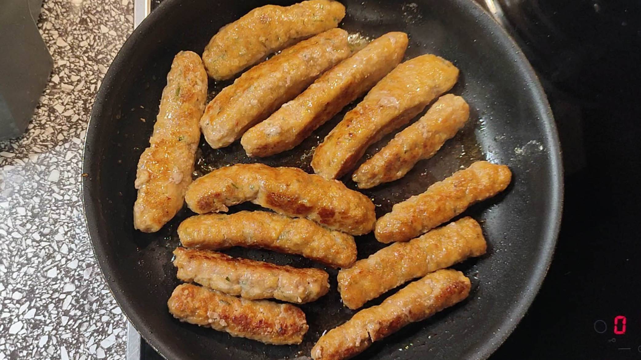 ♨️Обжарить колбаски на среднем огне со всех сторон, постоянно их переворачивая.