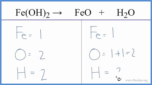 To balance Fe + H2O = FeO + H2 you will need to be sure to count all of atoms on each side of the chemical equation.