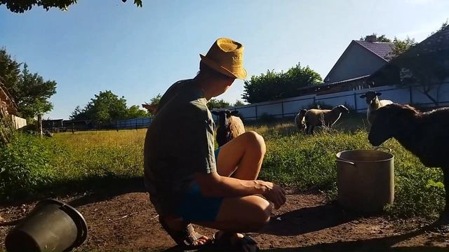 На ночь немного подкармливаю ягнят.
