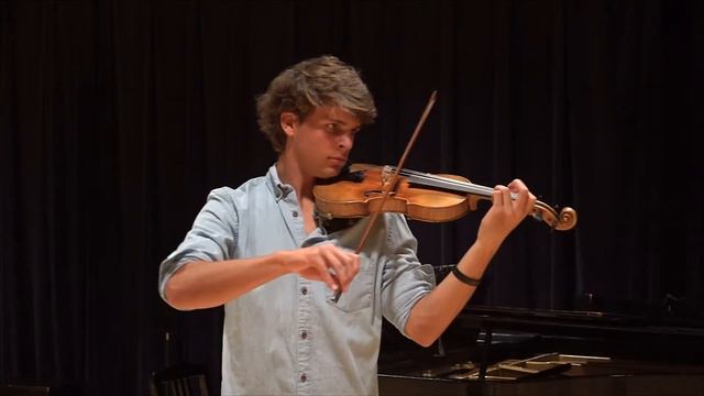 Sound sample of an old German made copy of a Stradivarius violin. The piece is an excerpt of the Bach Sonata No. 2, Fuga. The player is a high school violin student.