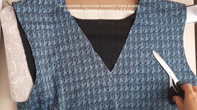 Как обработать разрез на горловине или рукавах бейкой из основной ткани. МК по шитью. смотреть онлайн