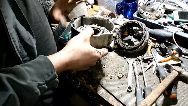 Как и в первой части видео разборки генератора, снимаем делаем фото последовательности разборки шкива и его порных частей.