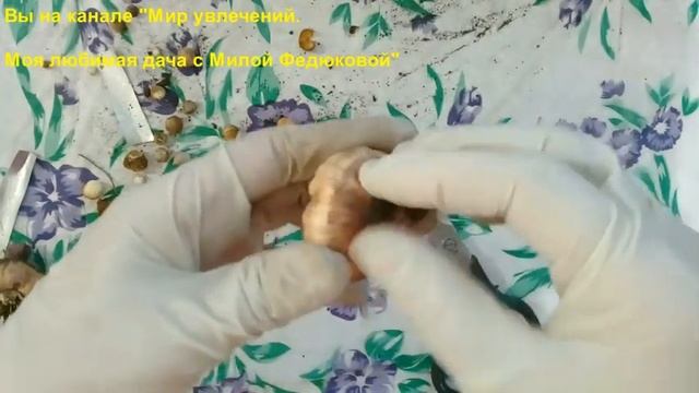 Обработка гладиолусов после выкопки. ✅аккуратно выкопала все гладиолусы. ✅обрезала только стебель 10-15 см. ✅замочила в Максиме 2 мл х 1 л воды часа на 1,5-2. ✅выложила слегка просушиться (в тени), не промываю. ✅сохнут дома на разносах под шкафами в коридоре до полного высыхания, пока старая луковица не будет легко отделяться. Корни можно не обрезать (отпадут со старой луковицей). ✅храню в коробке из под обуви пересыпав Карбофосом и переложив газетой рядом с лоджией ( в прохладном сухом месте).