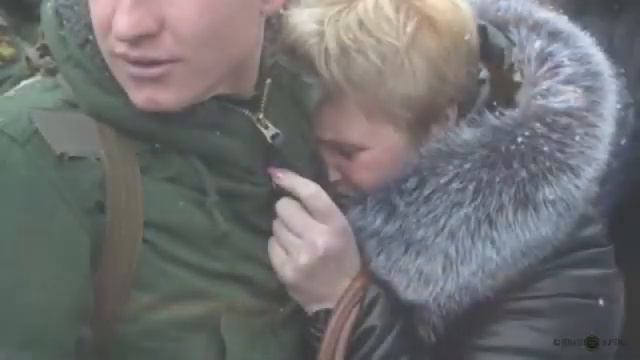 Солдата своего встречает мать.