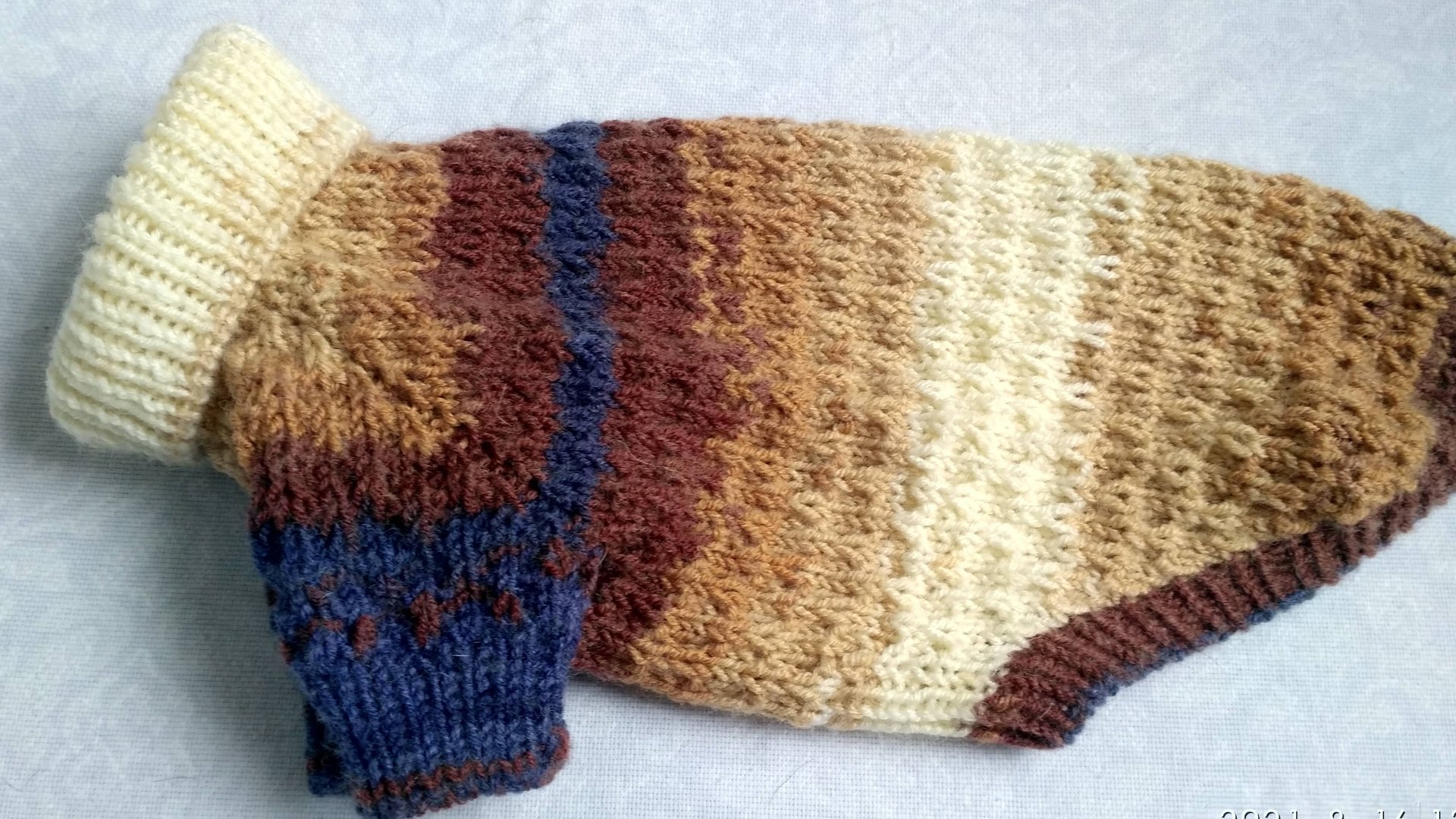 Когда-то был свитер, который я не охотно носила. В один день решила его распустить и так случилось, что нитки лежали и ждали своего часа год. Пришло их время и я долго не понимала что и как мне из них вязать. 3 раза перевязывала задуманное и на 4 раз все получилось так как надо. Я очень рада этому комплекту, запал мне в душу.