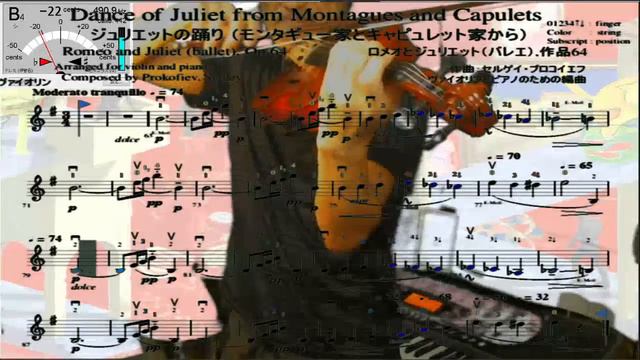 ヴァイオリンの練習としてロメオとジュリエットのモンタギュー家とキャピュレット家から「ジュリエットの踊り」の一節を弾いています。ピアノとヴァイオリン用に自分で編曲した楽譜です。