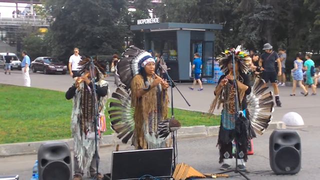 На этом видео, вы можете видеть настоящих и очень творческих музыкальных индейцев в Москве, недалеко от главного входа в ВДНХ