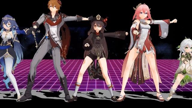 Персонажи геншина танцуют под Katty Parry.