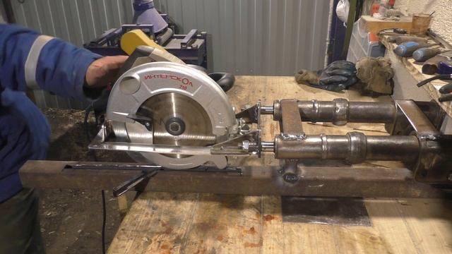 Сделал самодельную торцовочнную пилу по дереву из 2200 вт ручной пилы Элитех и самодельного станка для нее