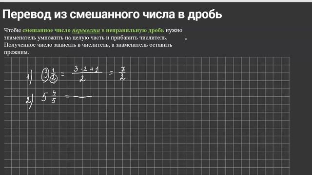 Как перевести смешанное число в неправильную дробь.